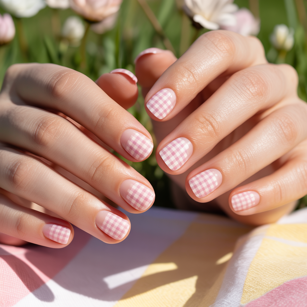 6. Spring Picnic Gingham Nails
