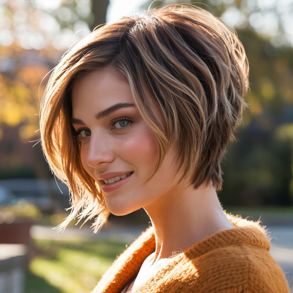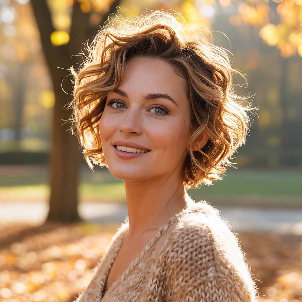 Tousled short waves bring softness and natural movement to short hair. The relaxed texture gives a cozy autumn vibe. This style looks effortless yet put together.