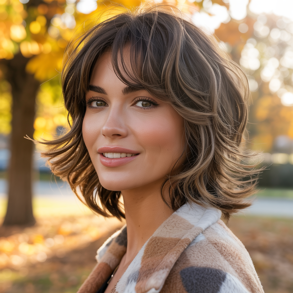 This haircut adds natural lift without extra styling effort. It pairs perfectly with fall layering fashion. A refined yet trendy seasonal option.