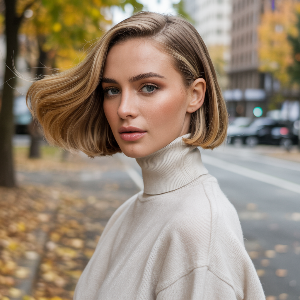 This style enhances jawline definition beautifully. It pairs perfectly with fall coats and tailored outfits. A classy, modern haircut that never goes out of fashion.