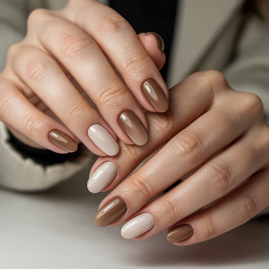 Instead of painting a texture pattern, this mimics the colour gradient of high-end knitwear warm beige at the cuticle melting into deeper caramel-latte at the tip, like shadow falling across a folded jumper. It looks genuinely expensive, requires no complicated nail art skills, and pairs with the entire autumn wardrobe. Minimal and unmistakably intentional.