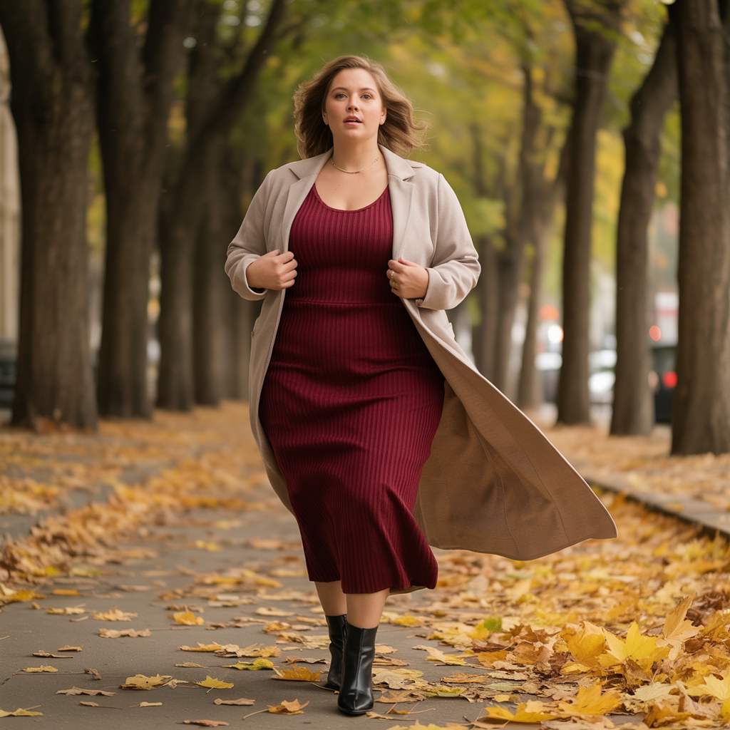 Layering a long cardigan over a fitted midi dress creates a soft and feminine fall outfit. The cardigan adds warmth and flow, while the dress highlights natural curves beautifully. This is one of the most versatile plus size fall outfit ideas.